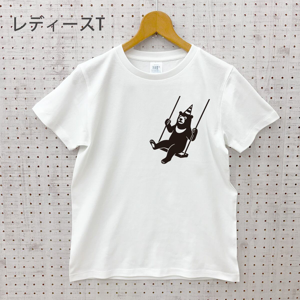 ブランコ熊 左胸大 Tシャツ メンズ レディース 選べる 3色 白 紺 ベージュ ホワイト ネイビー 母の日