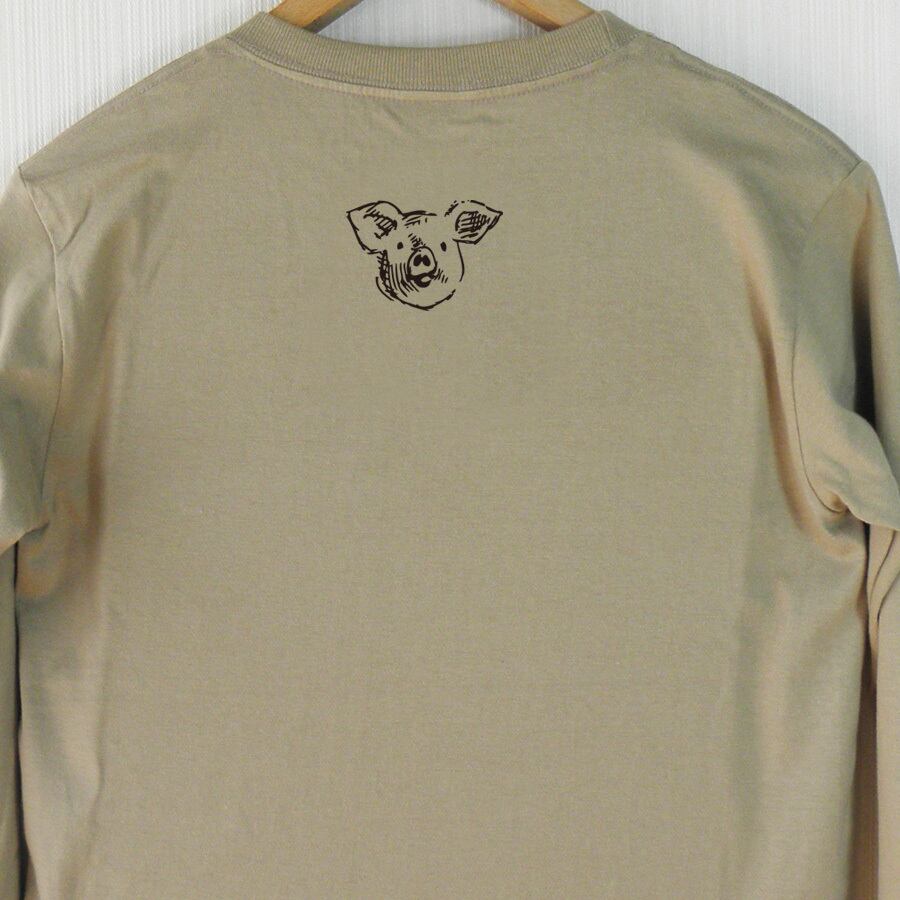 #ぶた #豚 #ブタ #カフェ #マグカップ #長袖 #長T #ロングスリーブス #ロンT #カットソー #秋 #冬 #春 #インナー #お出かけ #部屋着 #メンズ #レディース #綿 #コットン #紺 #ネイビー #サンドカーキ #杢グレー #防寒 #UVカット #UV対策 #秋 #冬 #春